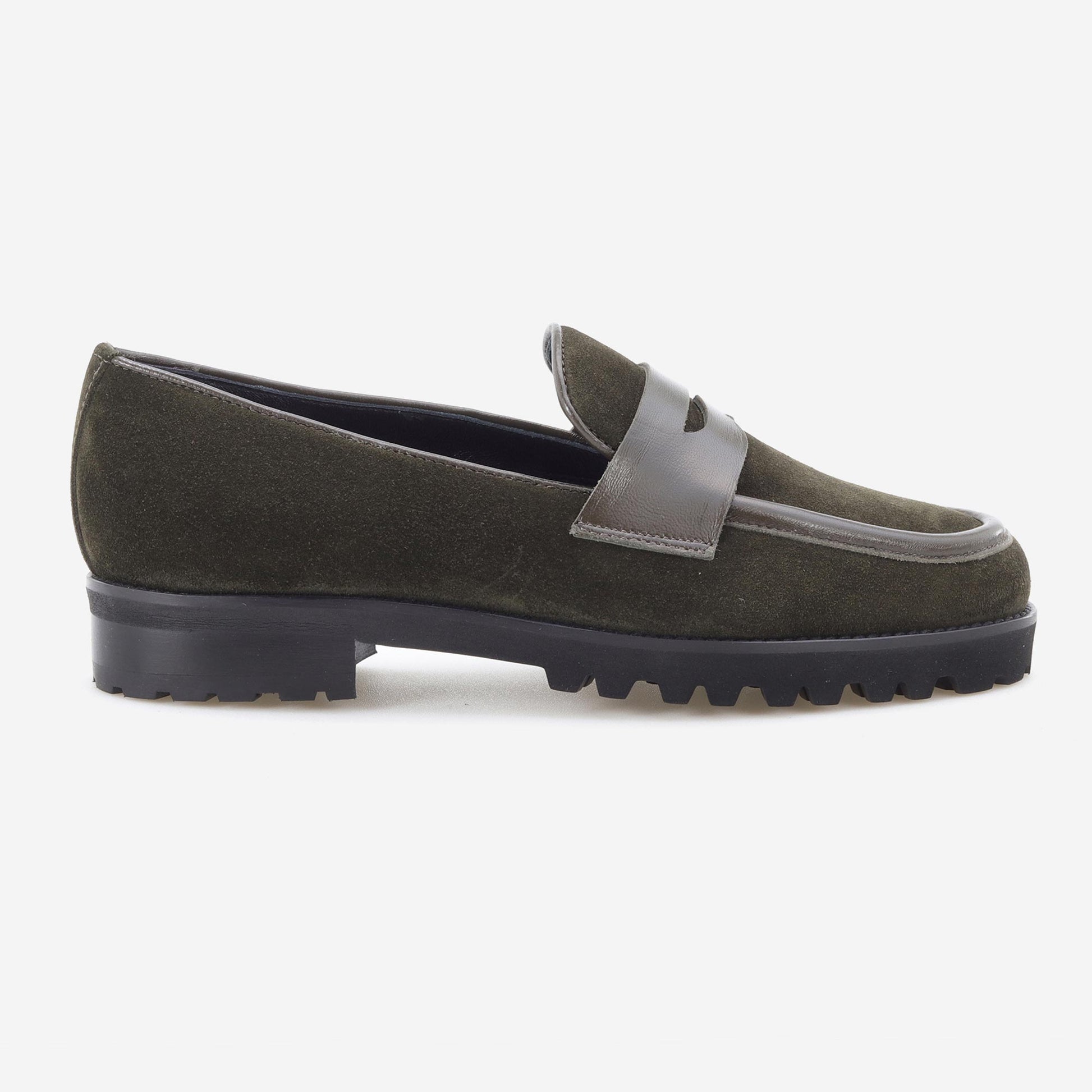 Mocassins de mulher em camurça e pele.