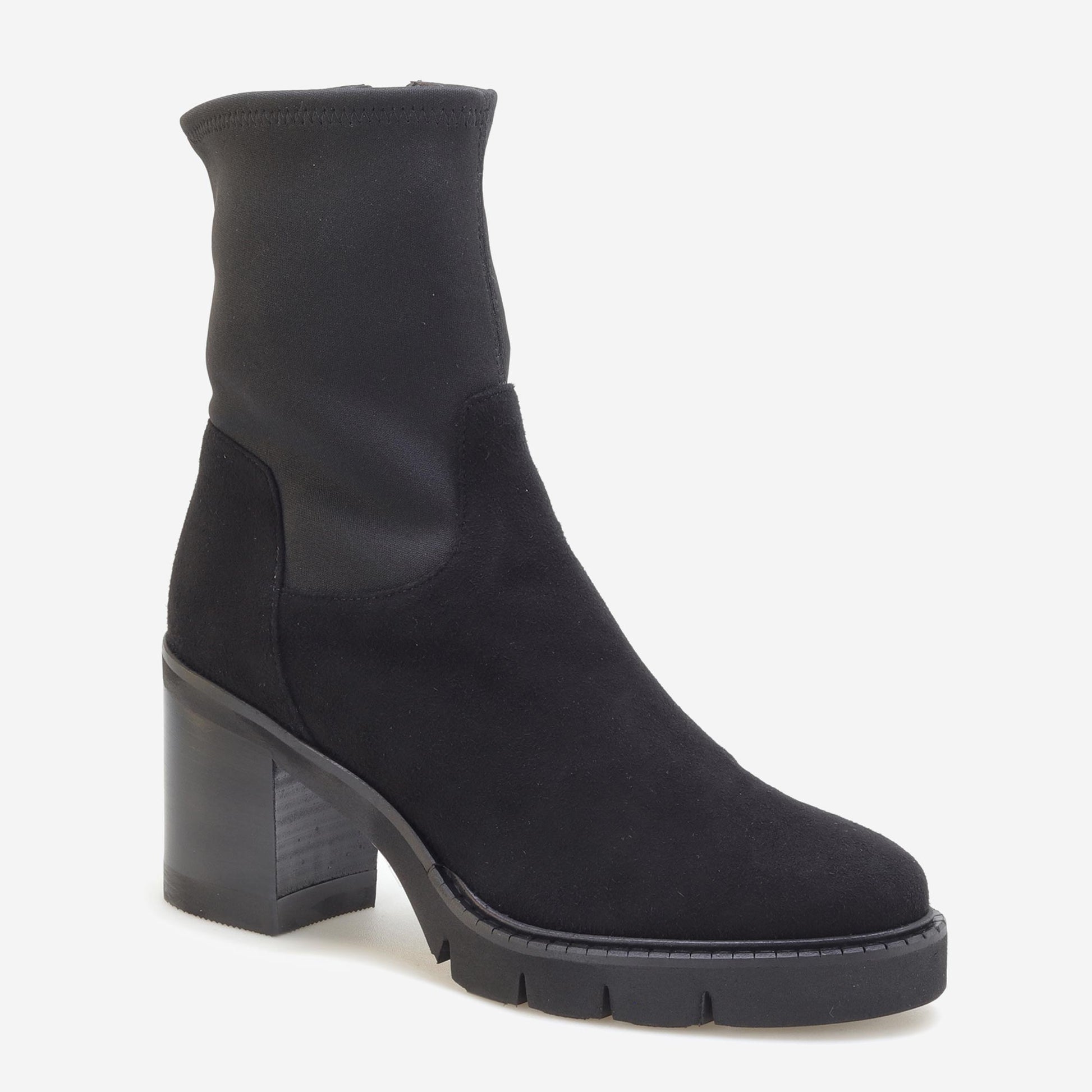 Botins de mulher em camurça e cano em lycra, com fecho eclair.